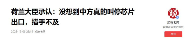 荷兰大臣承认:没想到中方真的叫停芯片出口,措手不及——观察者网